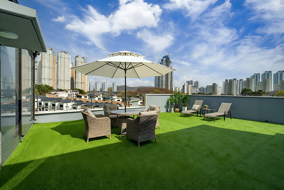 옥상 텃밭과 휴게 공간 등 실외 부대 시설입니다.